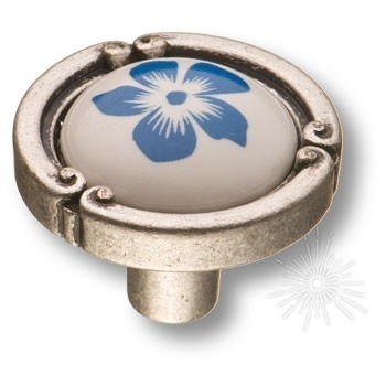 Ручка кнопка 15.090.35.PO24W.16, материал Замак Керамика, отделка Серебро Керамика, 26*d=35 мм
